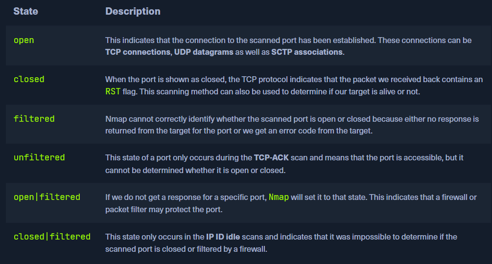 There are a total of 6 different states for a scanned port we can obtain: